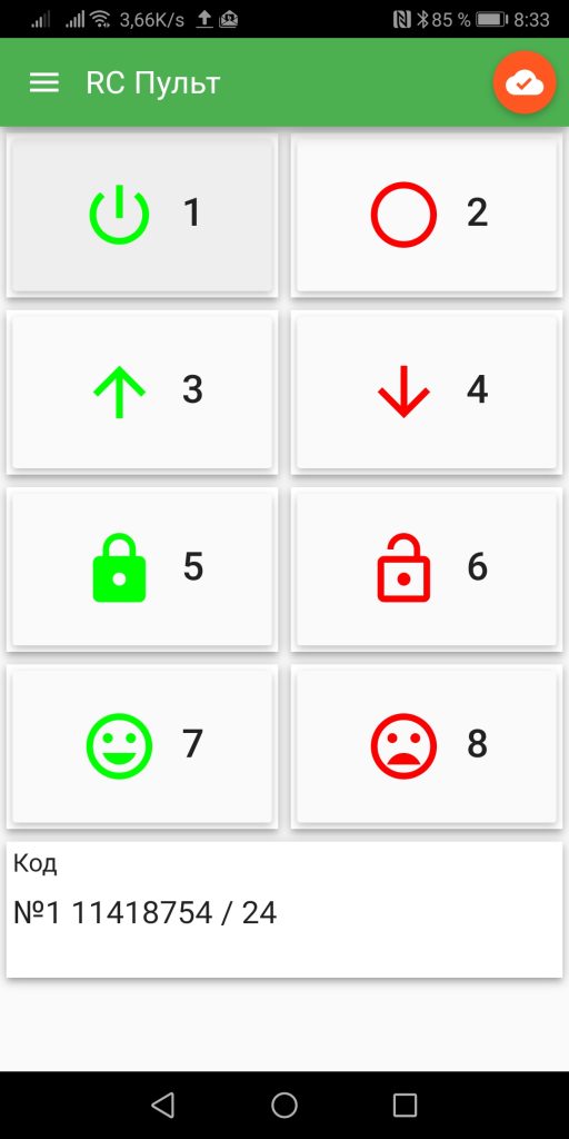 Устройство позволяет считывать код с пульта, записывать его в свою энергонезависимую память и присваивать кнопке на экране приложения.